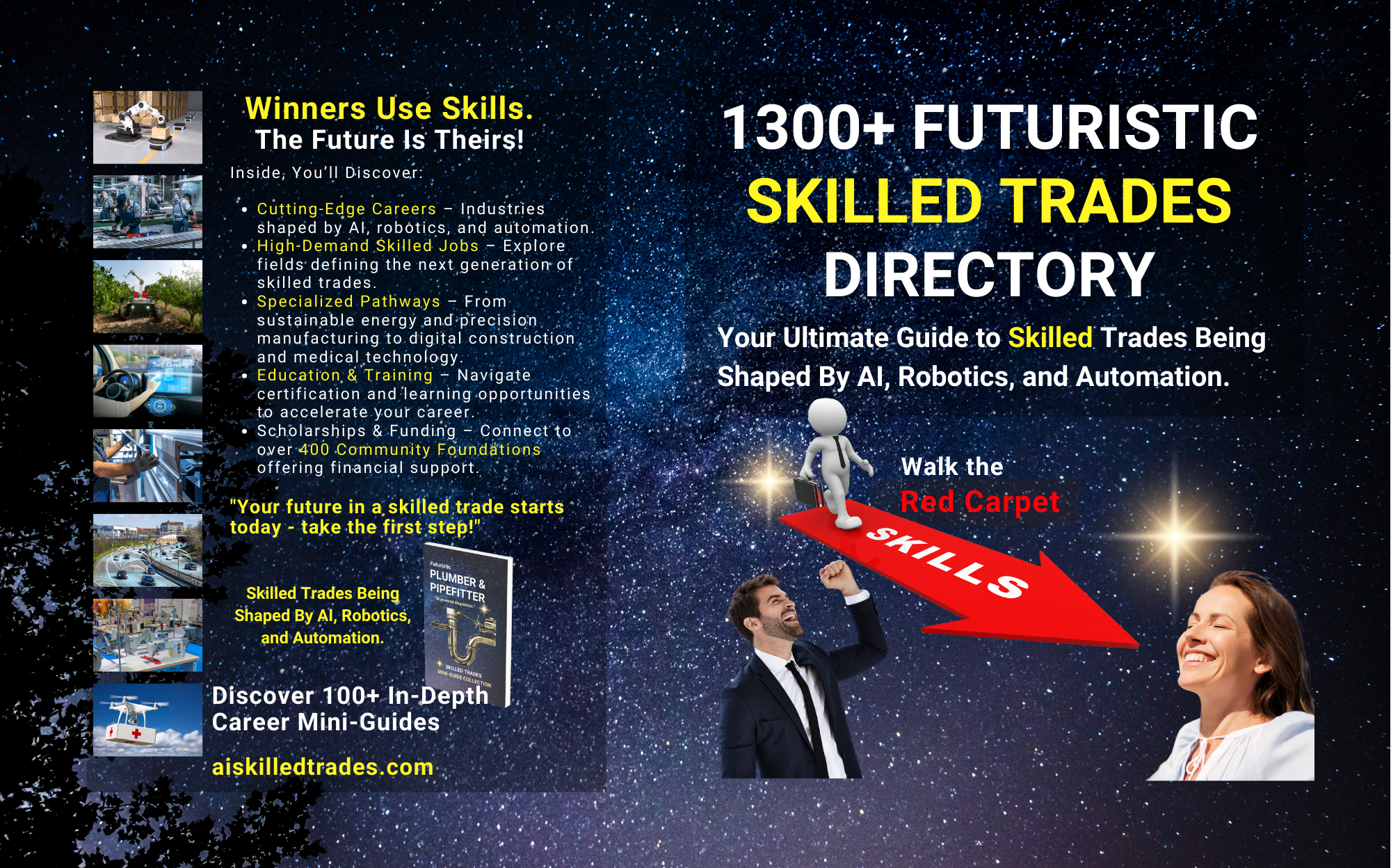 The world is changing, and skilled trades are evolving in powerful ways. This directory unlocks over 1,300 career paths shaped by AI, Automation, Innovation, and human ingenuity. Every profile is rooted in real U.S. Bureau of Labor Statistics data but goes beyond the numbers to deliver clear skills, modern insights, and meaningful options.